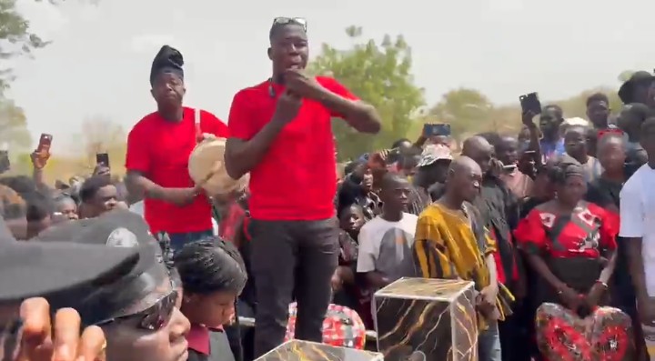 At the most solemn moment — as the casket was gently lowered into the earth — the presiding Reverend Father made a gracious and deliberate pause in the proceedings, granting space for traditional mourners to express their grief in the way their ancestors had done for generations. The rhythmic beats of drums filled the air, and the cries of mourning rang out across the burial grounds in what many witnesses described as a deeply emotional and spiritually charged moment.